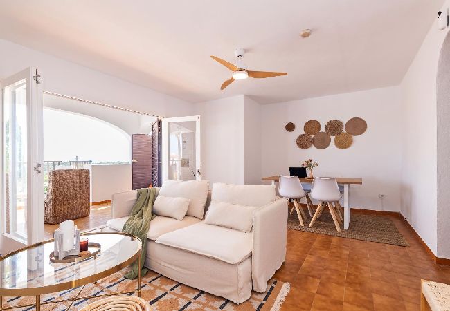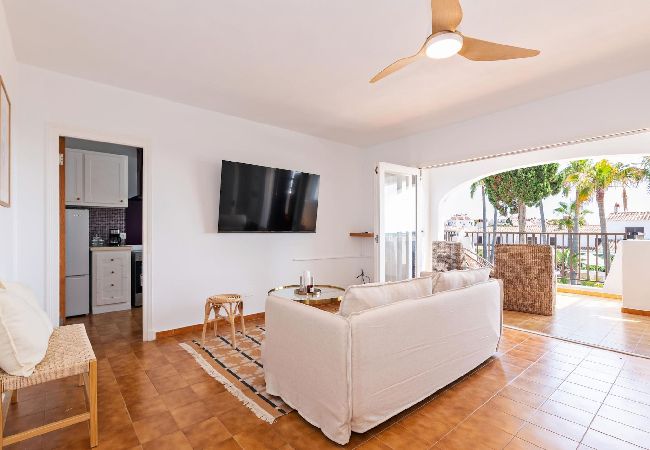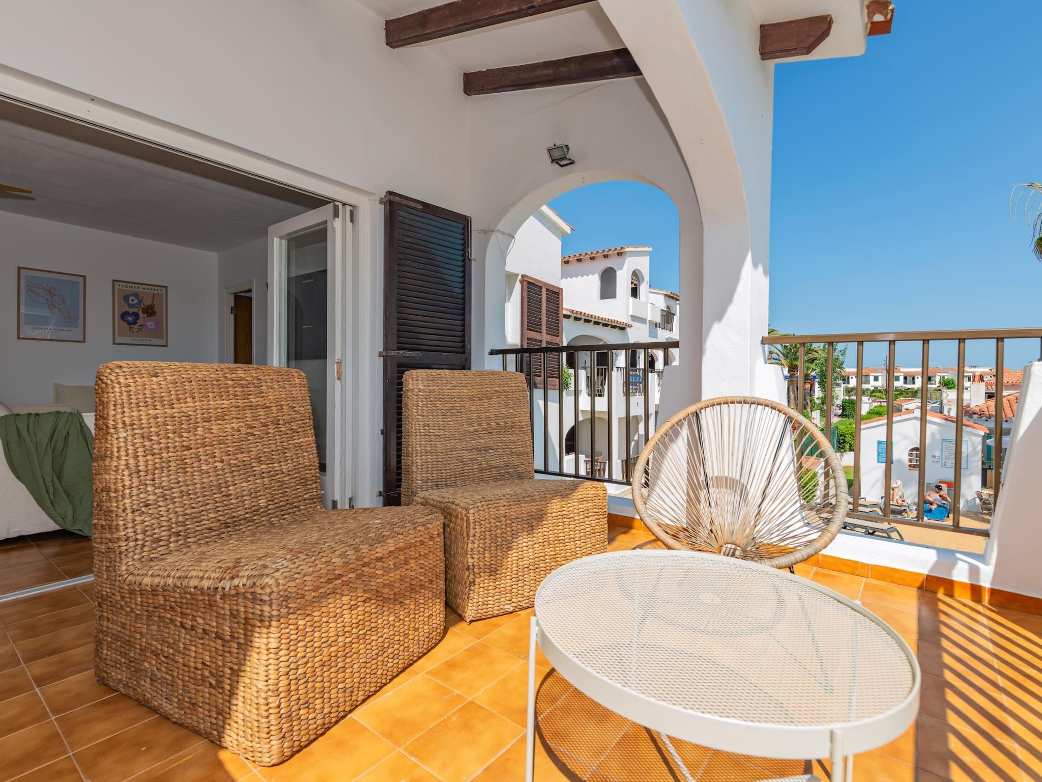 Situado en el complejo Siesta Mar, con dos piscinas con toboganes, zona de tumbonas, bar-restaurante y recepción. A pocos pasos de supermercados, farmacia y restaurantes, a 10 min caminando de la playa de Cala en Porter y 10 min en coche del aeropuerto.