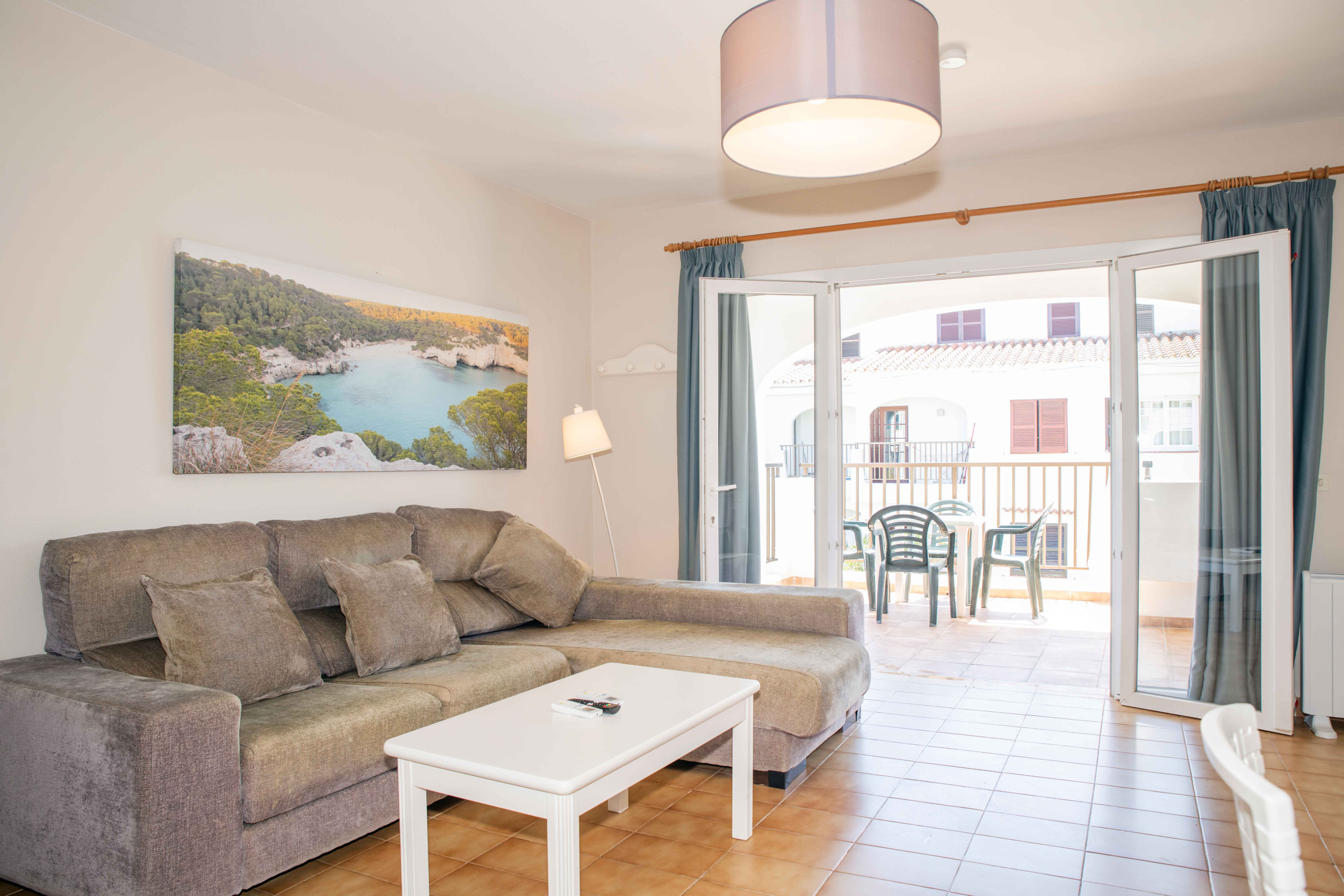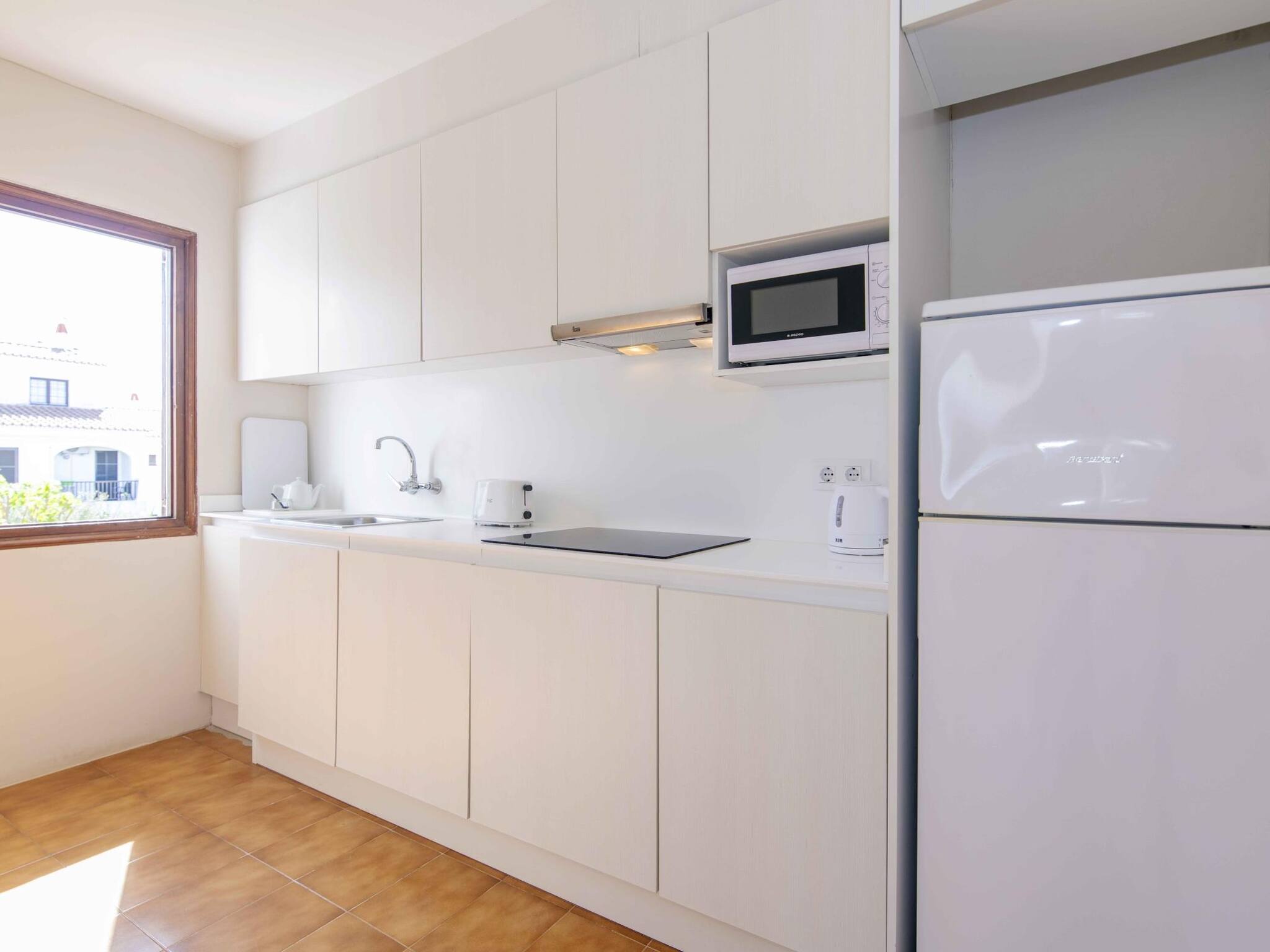 Situado en el complejo Siesta Mar, con dos piscinas con toboganes, zona de tumbonas, bar-restaurante y recepción. A pocos pasos de supermercados, farmacia y restaurantes, a 10 min caminando de la playa de Cala en Porter y 10 min en coche del aeropuerto.
