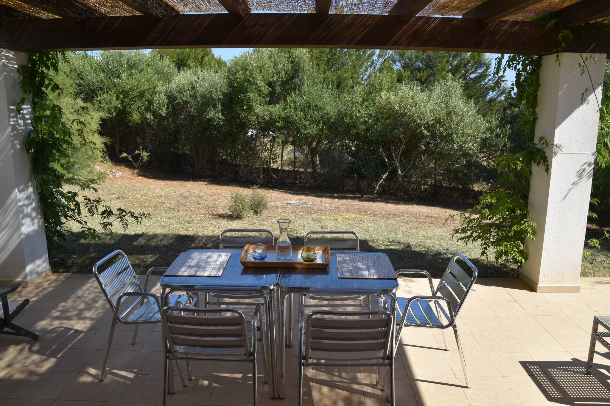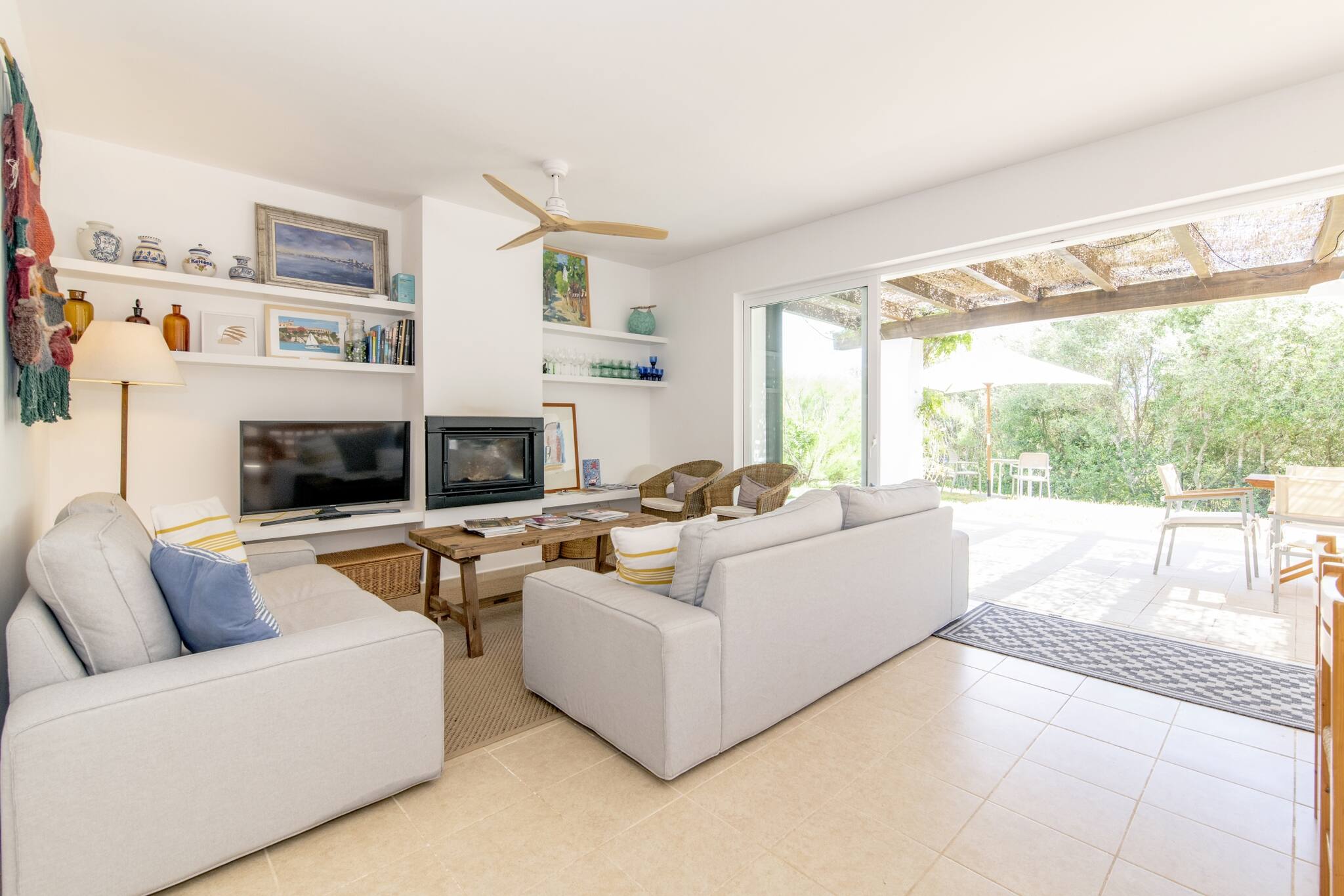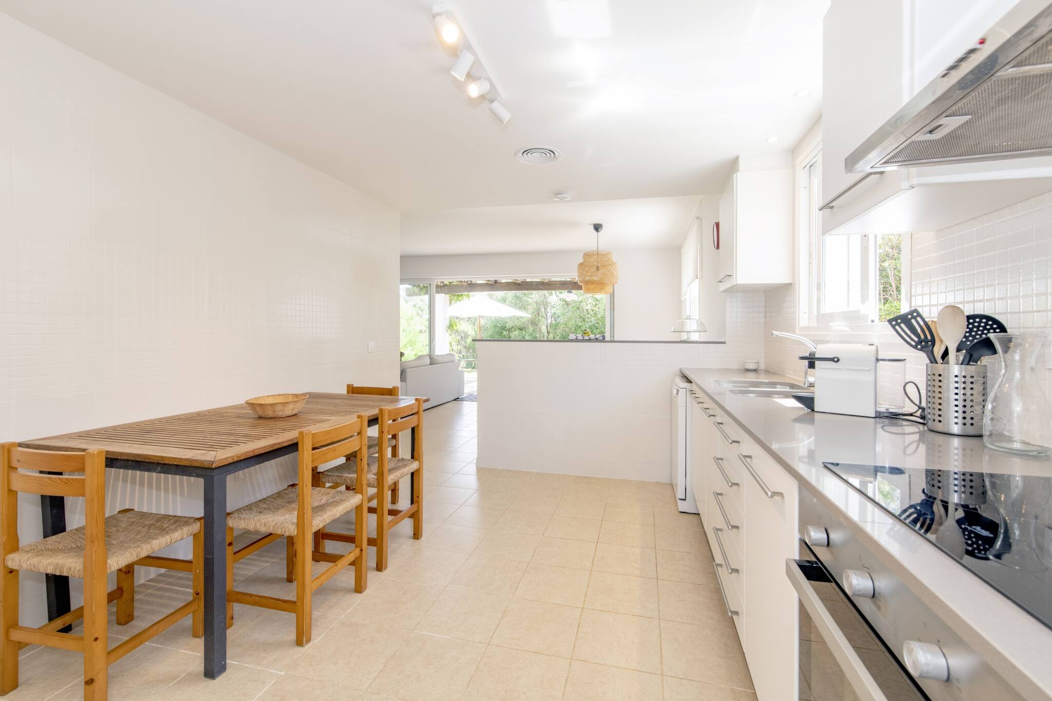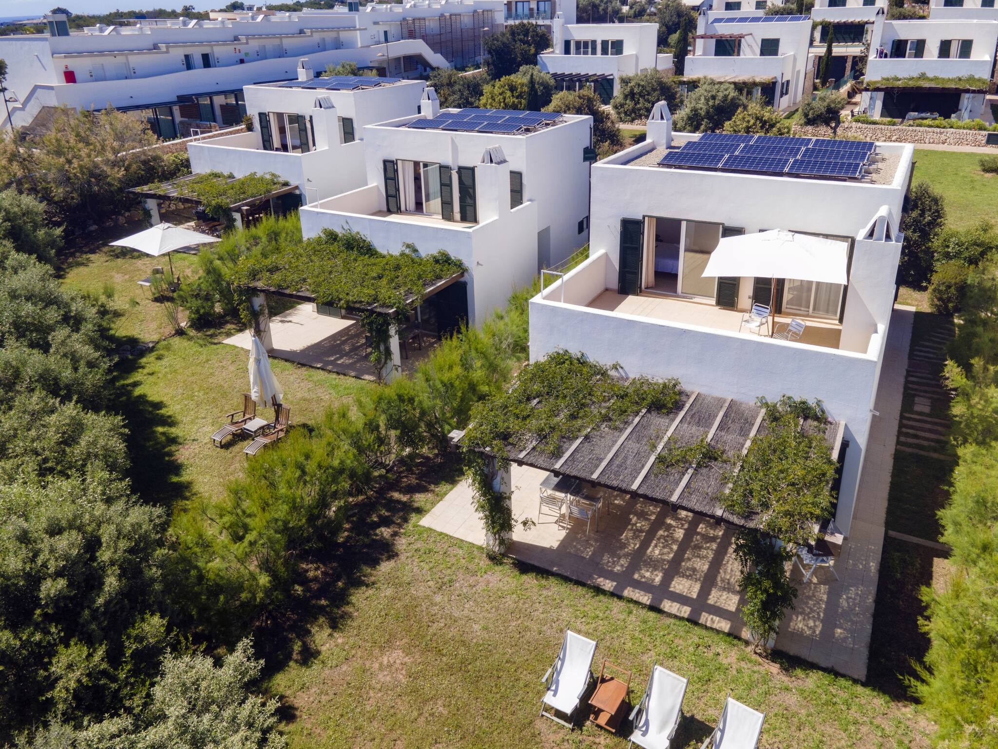 Esta elegante villa independiente forma parte de un exclusivo recinto privado compuesto por tres villas, que comparten un amplio jardín y piscina, ofreciendo un entorno tranquilo y cuidado. Se alquila de forma individual o, para grupos más grandes, existe la posibilidad de alquilar dos o incluso las tres villas, manteniendo comodidad y privacidad.