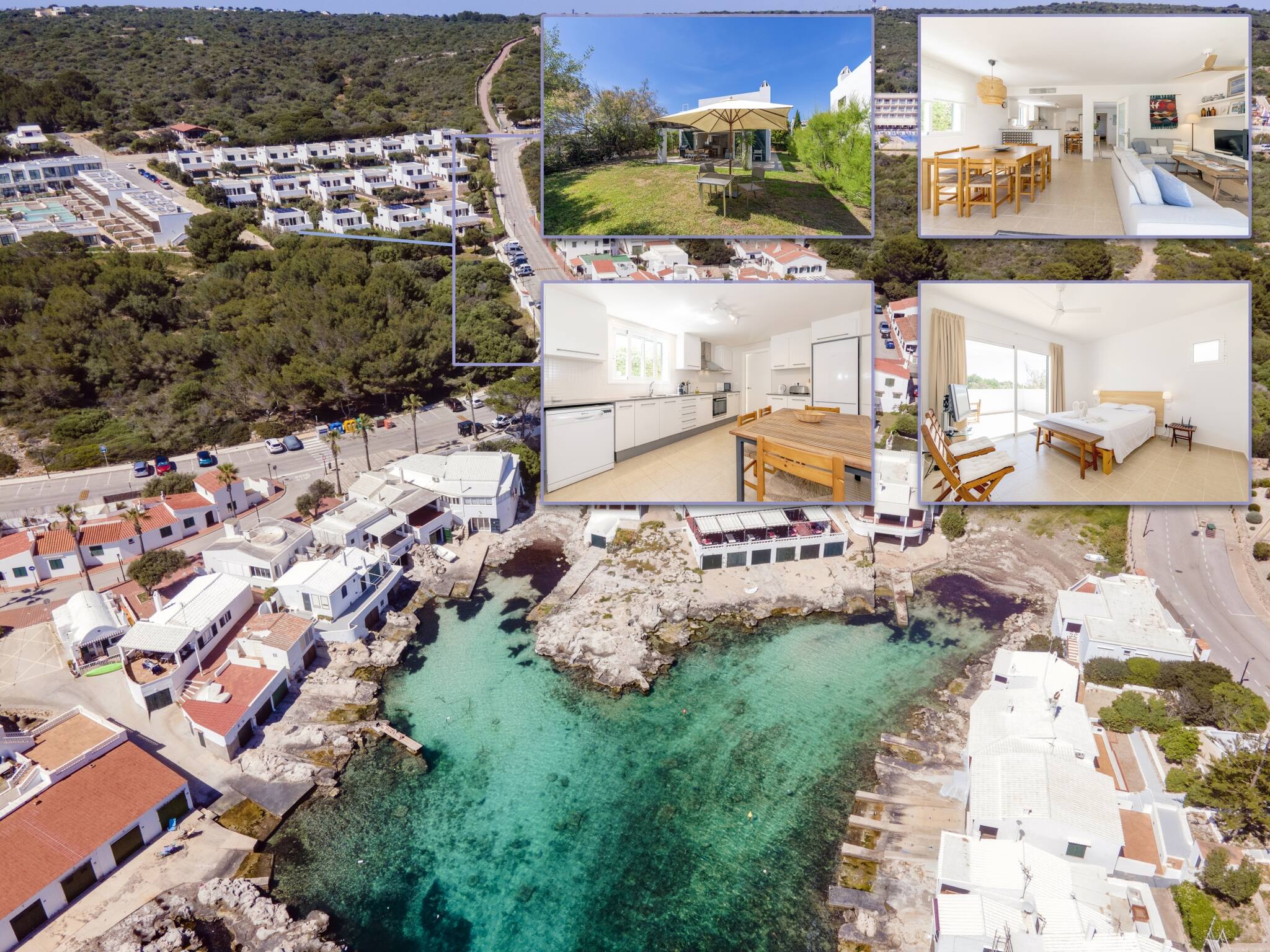 Ubicada en la prestigiosa zona de Marina de Biniancollet, en la costa sur de Menorca, la villa combina espacio, confort y tranquilidad. En la planta baja dispone de recibidor, lavadero, dos dormitorios dobles, salón-comedor con cocina integrada y un agradable porche cubierto de 26,64 m², ideal para disfrutar del aire libre.