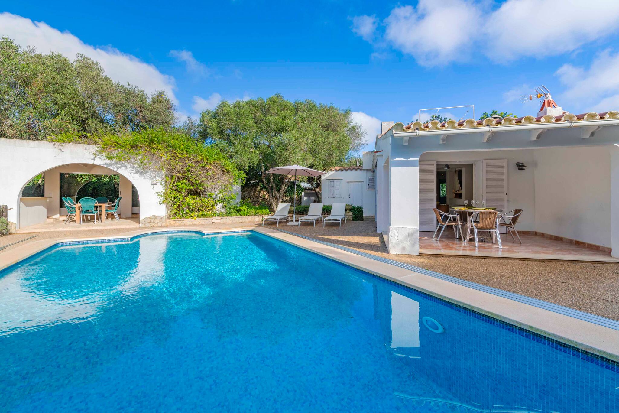 Situada en la tranquila y verde zona de Trebaluger, a pocos minutos de Es Castell y Sant Lluís, esta encantadora villa es ideal para familias, parejas o grupos de amigos de hasta 5 personas que buscan descanso y privacidad.