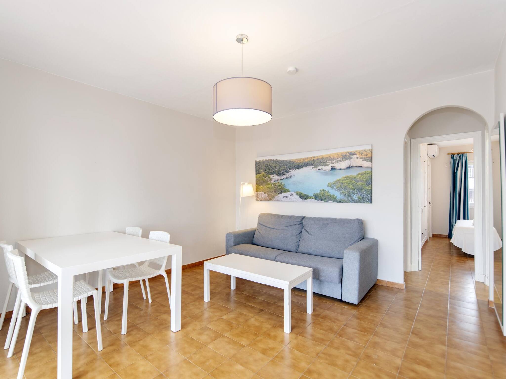Located in the Siesta Mar complex, with two swimming pools with slides, sunbed area, bar-restaurant and reception. A few steps from supermarkets, pharmacy and restaurants, 10 minutes walking from Cala en Porter beach and 10 minutes by car from the airport.