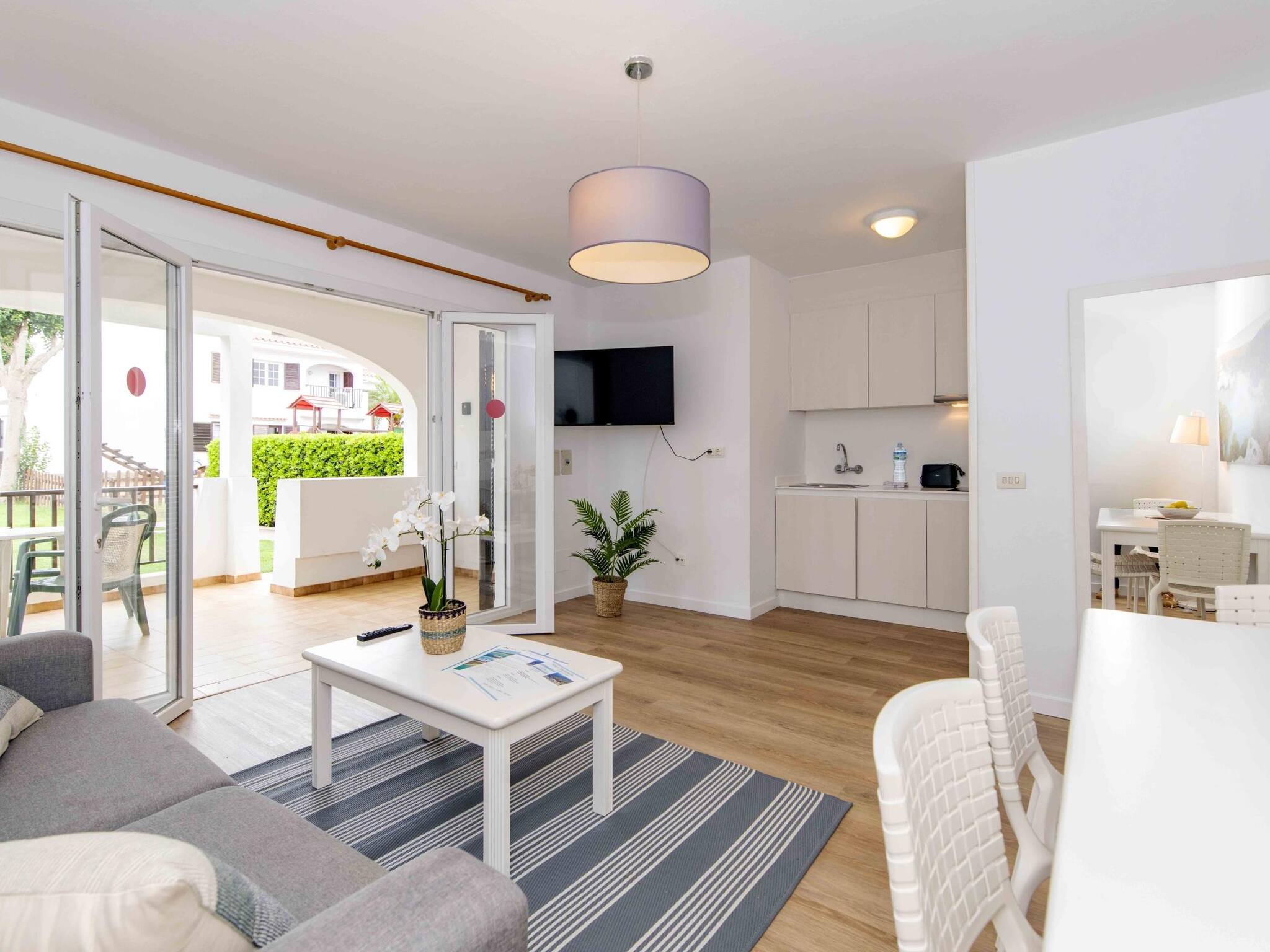 Located in the Siesta Mar complex, with two swimming pools with slides, sunbed area, bar-restaurant and reception. A few steps from supermarkets, pharmacy and restaurants, 10 minutes walking from Cala en Porter beach and 10 minutes by car from the airport.