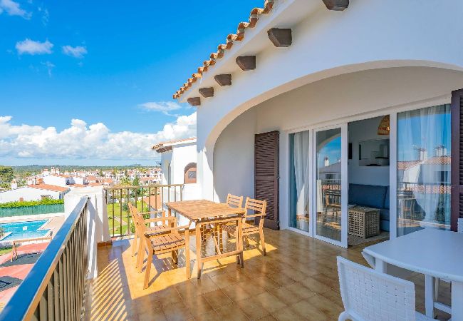 Situato nel complesso Siesta Mar, con due piscine con scivoli, zona lettini, bar-ristorante e reception. A pochi passi da supermercati, farmacia e ristoranti, a 10 minuti a piedi dalla spiaggia di Cala en Porter e a 10 minuti in auto dall'aeroporto.