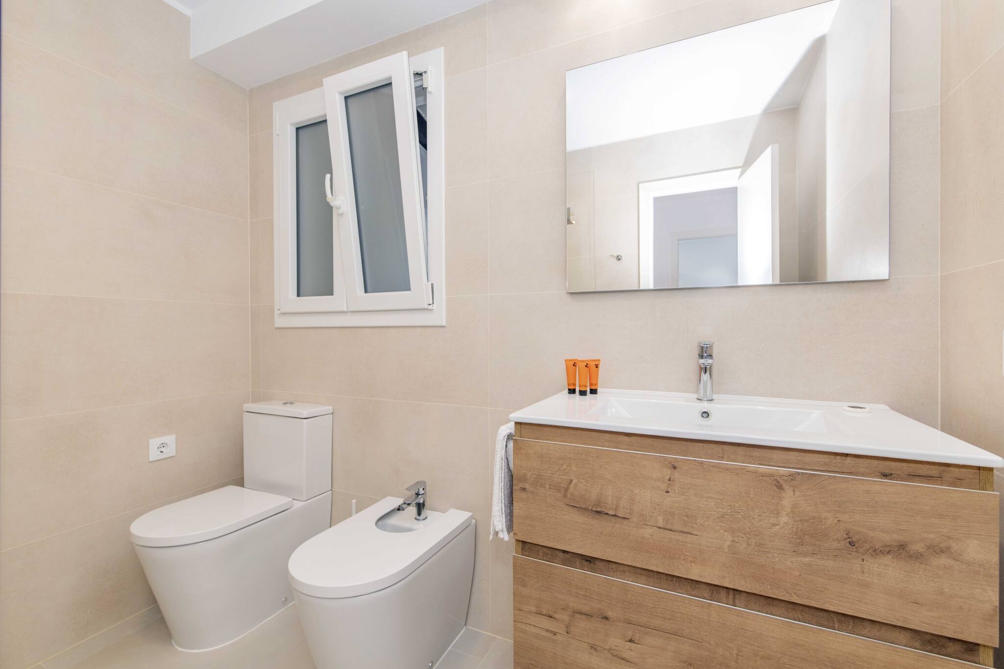L'interno dispone di aria condizionata in tutto l'alloggio e riscaldamento a pompa di calore, oltre a una confortevole zona soggiorno con TV e una cucina completamente attrezzata, pensata per non farti mancare nulla durante il tuo soggiorno.